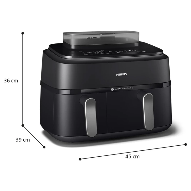 فناوری RapidAir Plus و Air Steam برای پخت بهتر / قابلیت پخت دوکاره: بخارپز و سرخکن / قابلیت تنظیک تایمر تا ۶۰ دقیقه / ۱۲ برنامه پیشفرض برای پخت متنوع / دارای دو سبد جداگانه برای پخت غذاهای مختلف / یکی از سبدها مجهز به قابلیت بخارپز