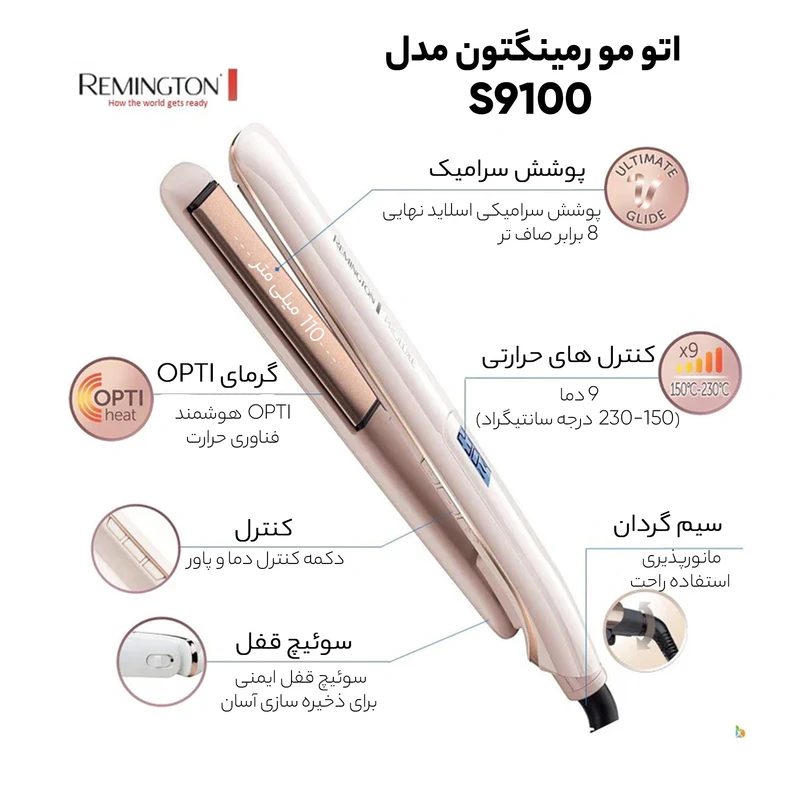 ۵ برابر صافی بیشتر - دارای صفحات سرامیکی - گرم شدن در ۳۰ ثانیه - تغییر دما بین ۱۵۰ تا ۲۳۰ - دارای فناوری هوشمند Opti Heat - دارای تنظیمات +Pro - حفظ ماندگاری حالت موها
